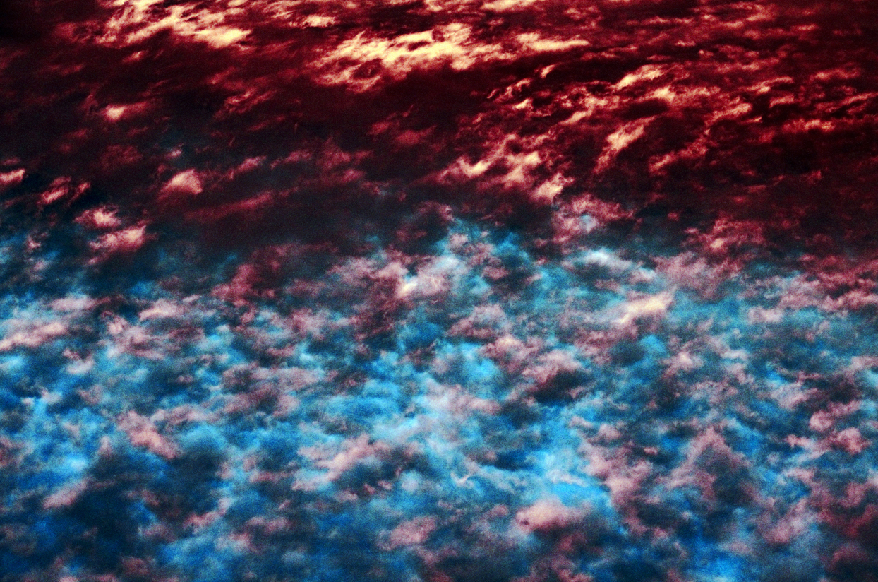 Sans énergie créatrice, d’un geste naturel en recherche d’espoir, Ludovic Bourgeois relève la tête vers le ciel. Dans cet espace, trait d’union entre la Terre et l’Univers, Ludovic Bourgeois puise les trajectoires qu’il veut nous donner à voir dans sa série Anxiogène. Il y poursuit sa réflexion sur l’univers de l’intime, sur les émotions fruits des désordres du monde. Ses ciels empruntant différents chemins, de la biologie moléculaire aux différents états de l’eau. Il capture les traces d’un avion à suivre pour atteindre des filaments d’ADN, dans une forme de radiographie du sujet. A travers ses ciels teintés de bleu de méthylène, il renvoie (nous rappelle) à la base anatomique de nos corps qui échappent à toute volonté et contrôle.