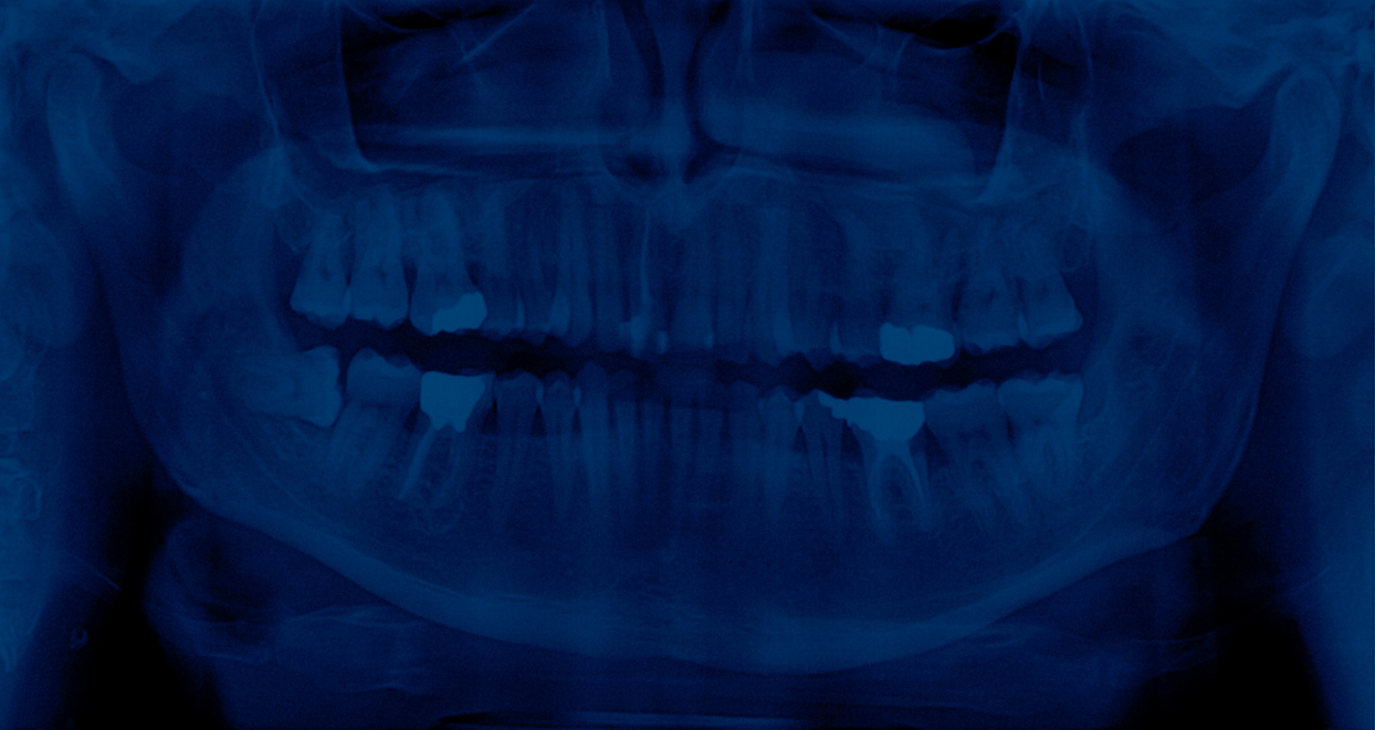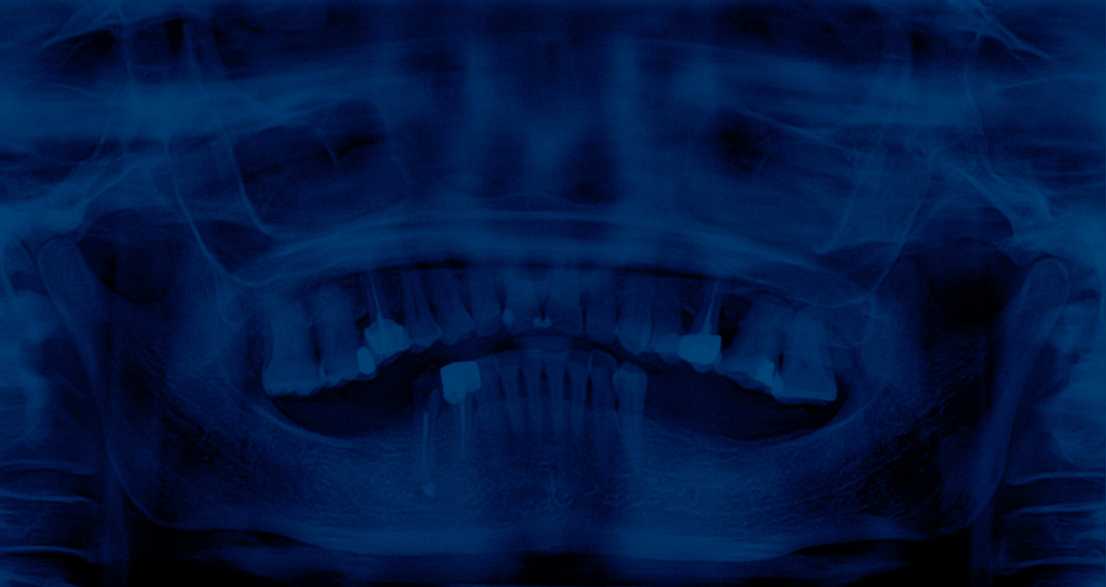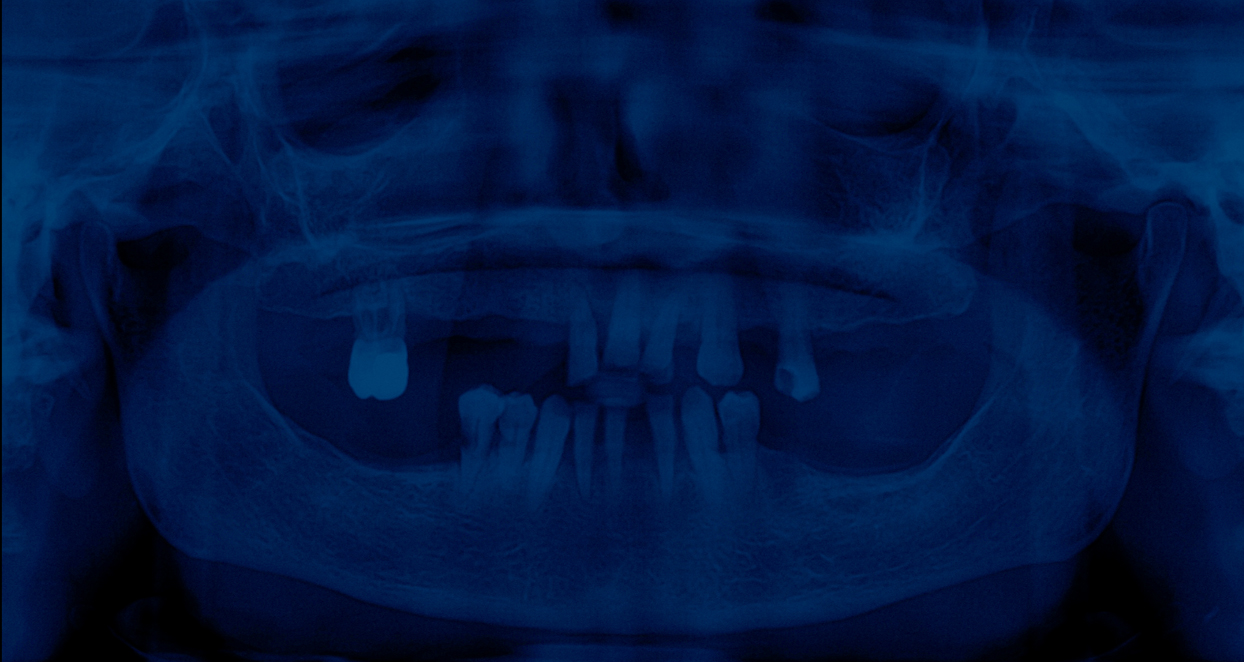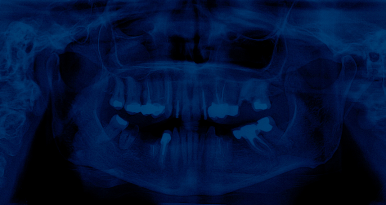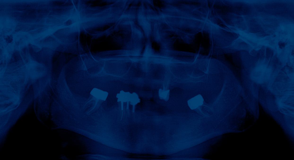 En choisissant la radiographie dentaire, l’artiste détourne un objet du quotidien pour en faire un symbole universel de la disparition. Chaque dent, empreinte unique d’une vie, est ici réduite à une forme abstraite, vidée de sa substance. Le mur de radiographies, tel un mur des pleurs, devient un lieu de recueillement où le spectateur peut déposer sa propre douleur. Le bleu, couleur de la mélancolie, amplifie l’atmosphère de deuil.